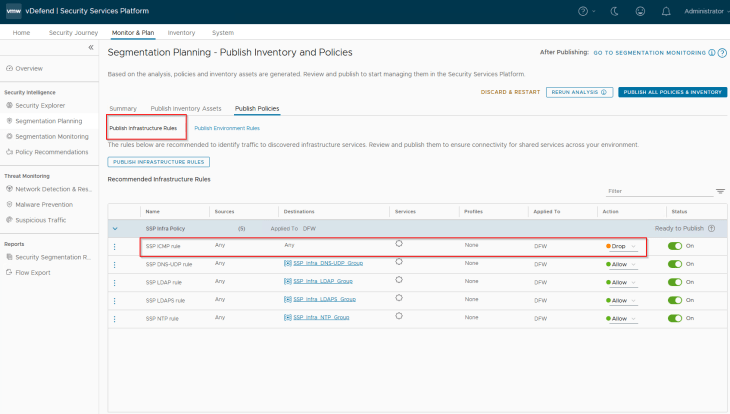 Navigate to Segmentation Planning -> Publish Policies -> Publish Infrastructure Rules, and hit on Publish.