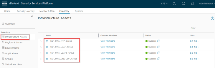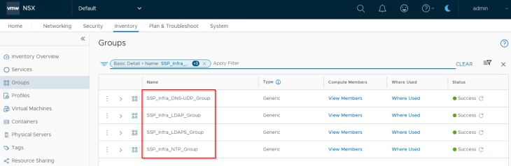 Infrastructure Assets in SSP are realized as security groups in NSX with a static membership.