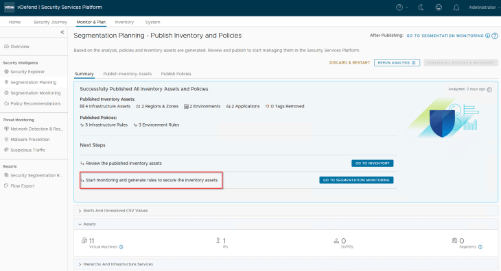 Welcome back!!! We are at Part 5 of the blog series on vDefend Security Services Platform and Security Segmentation. In the previous chapter, we performed an application hierarchy ingestion and generated the recommendations for assets and policies. Now let’s start publishing the assets and policies and review the NSX objects that are created by the workflow.