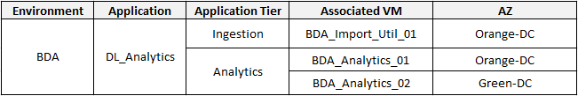 To demonstrate a partial hierarchy import, I have deployed a new Analytics application called DL_Analytics in a new environment called BDA that spans across two zones –> Orange-DC and Green-DC. These two zones host both independent and spanned applications and are also DR sites to each other, and the zones are not a security boundary.