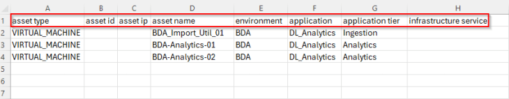 As stated in the previous chapters, hierarchy columns in the csv metadata are flexible. Let’s build a new csv metadata file with a partial hierarchy, skipping the region and zone fields and with only environment, application and application tier fields included.