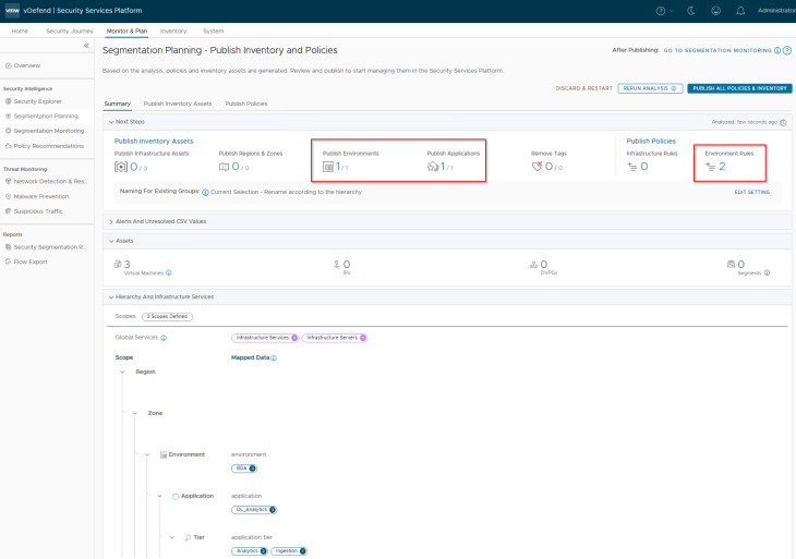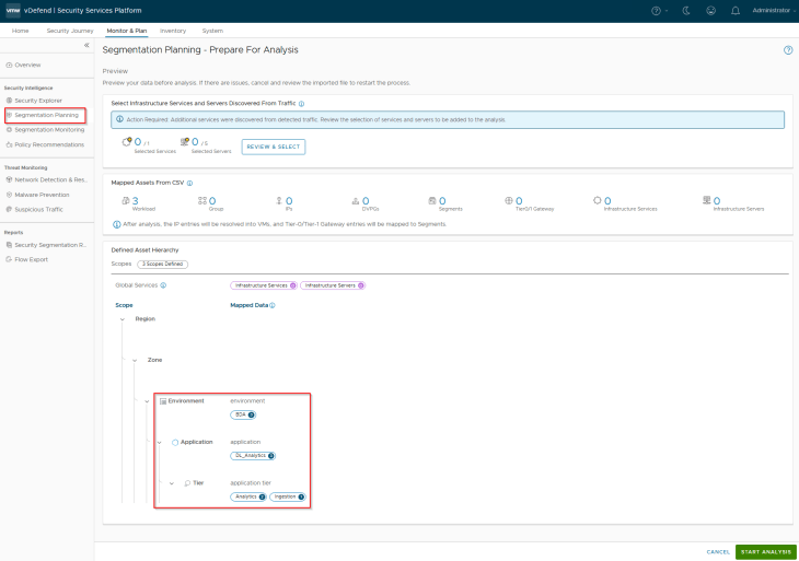 Welcome back and New Year Wishes to all the readers!!! We are at Part 7 of the blog series on vDefend Security Services Platform and Security Segmentation. In the previous three chapters, we discussed the full hierarchy import procedure (5 hierarchy levels) of the Prod and Dev CRM applications and completed the segmentation journey by configuring the necessary flow-based exceptions & microsegmentation rules and lock down of the shared infrastructure services, environmental and application policies. In this chapter, we will introduce a new Analytics application to our lab that spans across two zones and demonstrate an incremental partial hierarchy import that builds on top of the already existing hierarchy that we imported. If you missed the previous chapters where we covered the full hierarchy import, please check out from the links below: