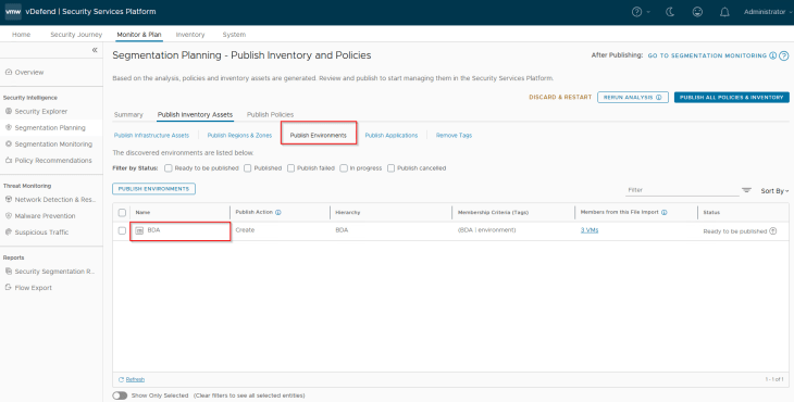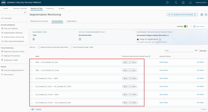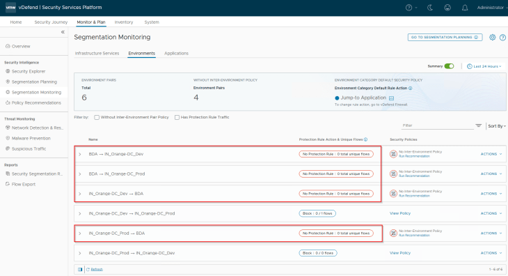 Since we have a new environment onboarded (called BDA), Security Intelligence creates 4 new environment pairs based on the direction of traffic with the existing environments – Prod and Dev