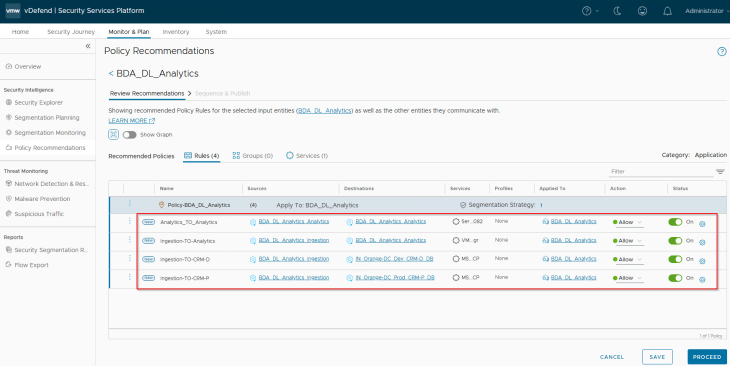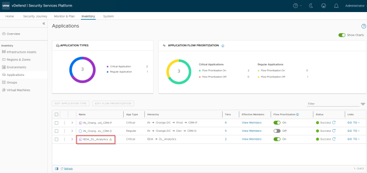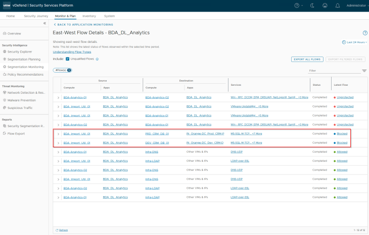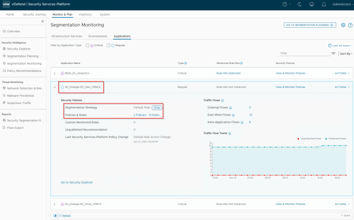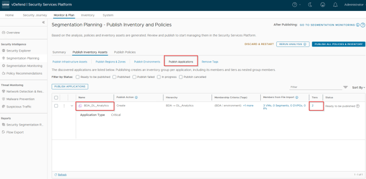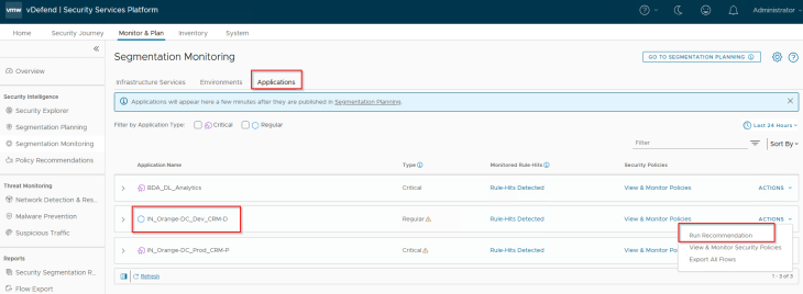 Let’s navigate to Monitor & Plan -> Segmentation Monitoring -> Applications and review the flows for BDA_DL_Analytics application
