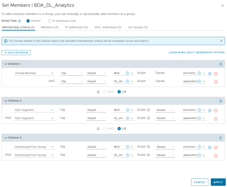 As discussed previously, these inventory assets map as dynamic tag-based security groups in NSX Manager. Below is the NSX security group for the Application asset.