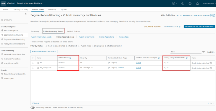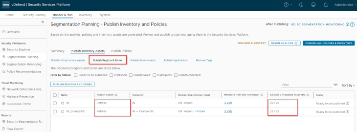 Since the Region and Zone assets were already existing in SSP as part of previous hierarchy import, we see the publishing action as Refresh. This publishing action will update the VMs with Region and Zone tags (as highlighted below)