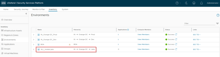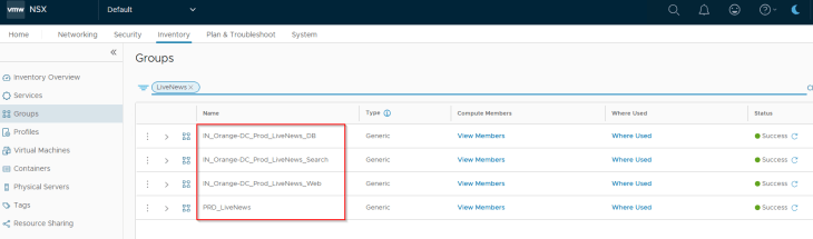 If we check the SSP Inventory for environment assets, we see that the existing NSX group name is preserved.