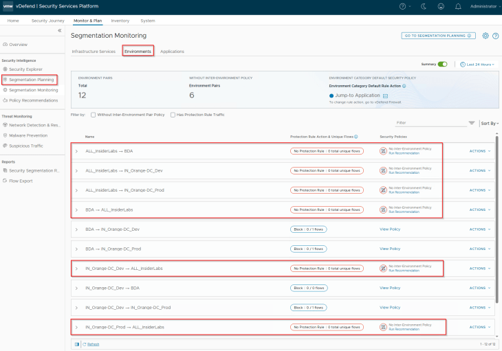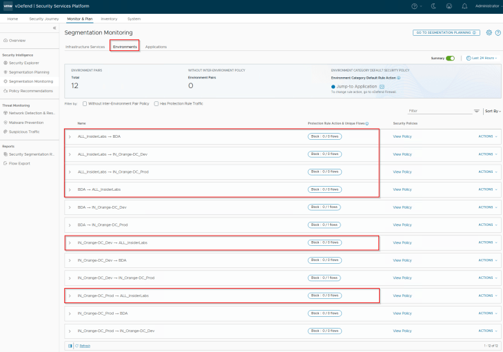 As discussed previously, this Labs environment is completely isolated with no inter-environment flows, hence it’s safe to implement inter-environment protection rules with an action of Deny