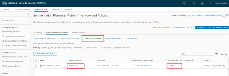 Since the Region, Zone and Environment assets were already existing in SSP as part of previous hierarchy import, we see the publishing action as Refresh. This publishing action will update the VMs with Region, Zone and Environment tags (as highlighted below)