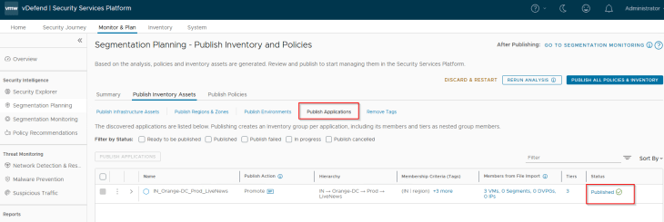 Welcome to Part 8 of the blog series on vDefend Security Services Platform and Security Segmentation. In the previous chapters, we demonstrated full and partial hierarchy imports based on the datacenter / application topology and Security Intelligence automated the security tag assignments to workloads, assets and NSX group creation and the necessary infrastructure, environment and application microsegmentation policies.