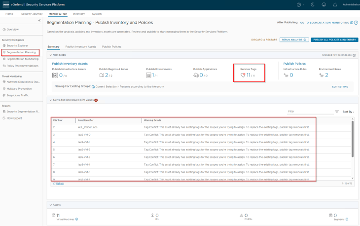 Since we haven’t applied any tags to the VMs in NSX, we won’t see any tag conflict situation.