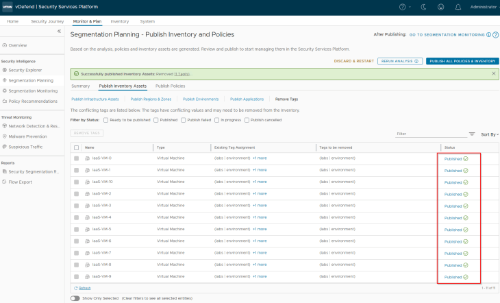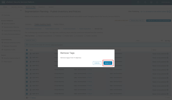 and we can confirm from NSX inventory that the conflicting tag is removed from the VMs