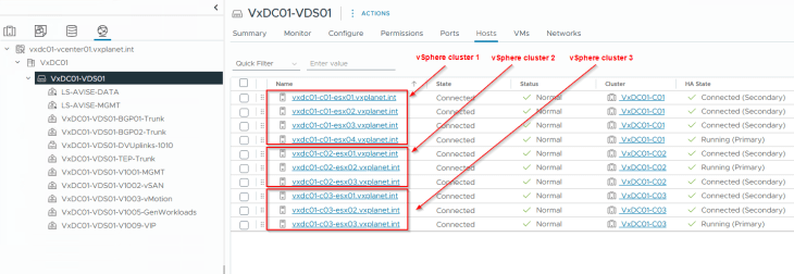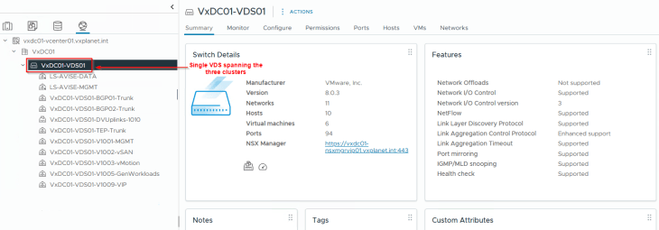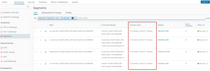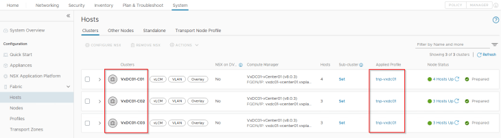 • The three vSphere zones are configured on the same NSX overlay transport zone.