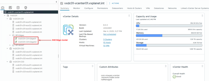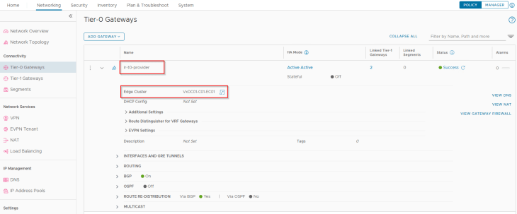 • The edge cluster for the T0 gateway will be deployed on a shared vSphere management – edge cluster or on a dedicated vSphere edge cluster.