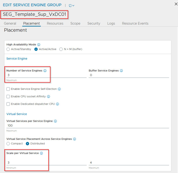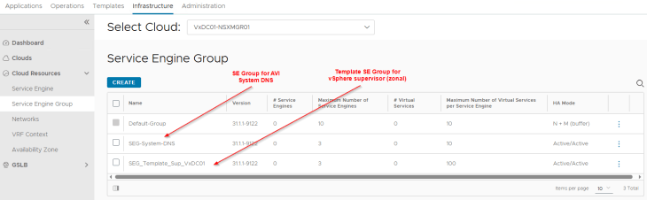 • A dedicated SE Group will be created for the vSphere supervisor. The service engines within the SE group will be deployed across the zones with zone awareness (available from AVI 31.1.1 onwards)