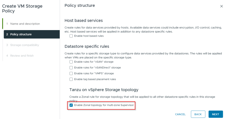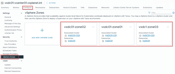• When a TKG service cluster is deployed, the control plane nodes will be deployed across the three vSphere zones.