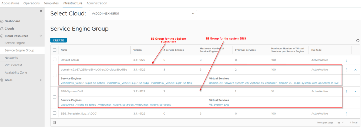 • Optionally, another dedicated SE Group per vSphere supervisor can be used to host the system DNS for L7 Ingress / GSLB / AMKO use cases.