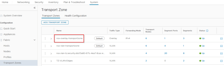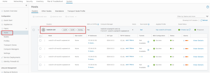 This vSphere cluster VxDC01-C01 is prepared for NSX Overlay using a transport node profile.