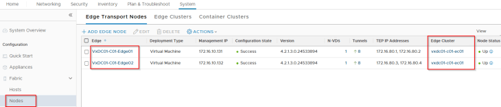 We have an edge cluster hosted on this vSphere cluster that will be used to host the T1 and T0 gateways of vSphere supervisor and namespaces.