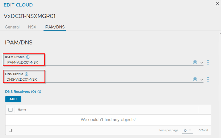 We also have an IPAM and DNS profile attached to the cloud connector.