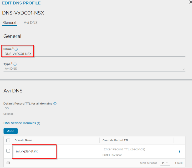 DNS profile has the list of sub-domains where the Ingress FQDNs will be created. For each sub-domain, a delegation need to be created on the upstream DNS servers to the AVI DNS virtual service that will be authoritative for all the records under this subdomain.