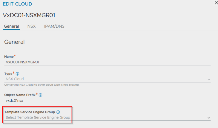 If there isn’t an SE Group specified under the “Template SE Group”, then the SE Group will be created as a clone of the “Default Group”. Hence it is very important to pre-configure this template SE Group with the correct HA mode, sizing and placement settings before activating vSphere supervisor, else the vSphere supervisor deployment will fail.