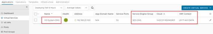We have a second SE Group created to place the AVI System DNS virtual service. This DNS virtual service will host the DNS records of all the Ingress FQDNs that are created on the TKG service clusters.
