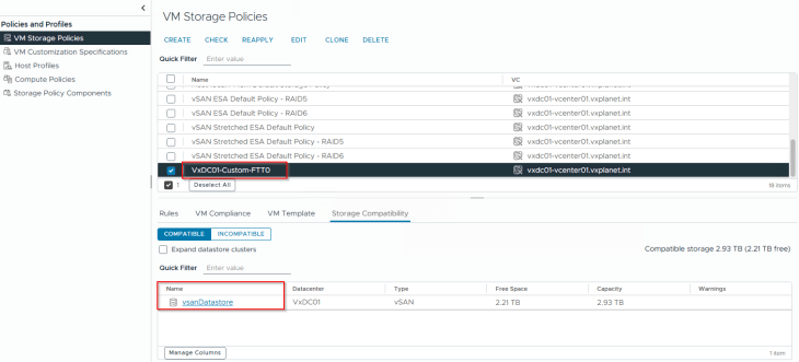 - Placement settings : Cluster VxDC01-C01 and vSAN datastore
