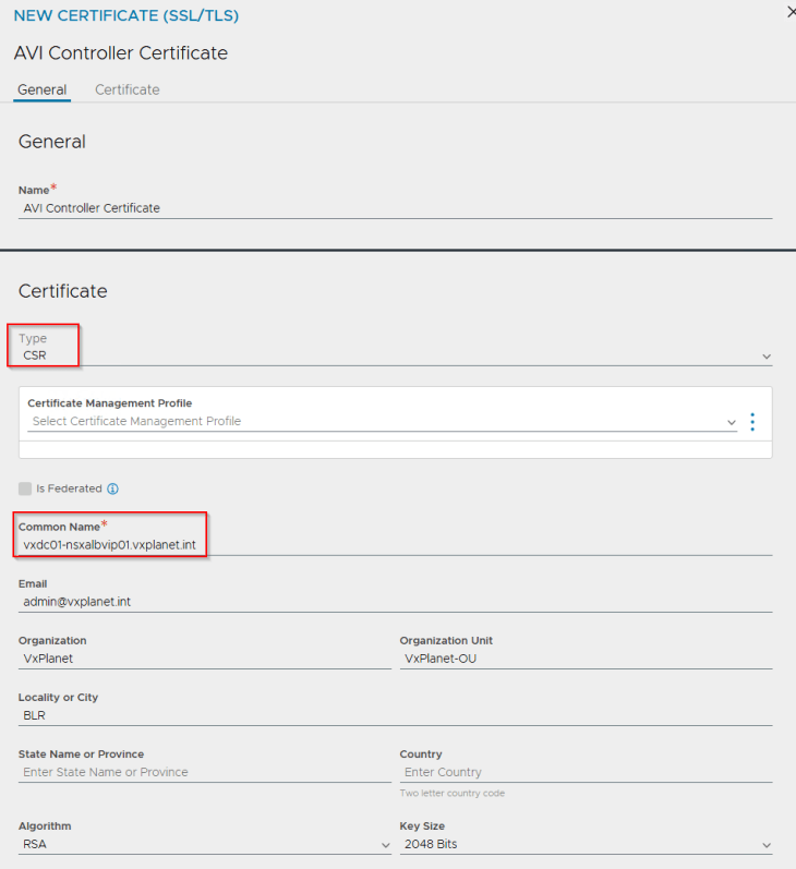 Let’s create the CSR from AVI console with the SAN fields updated with AVI VIP and individual node FQDNs.