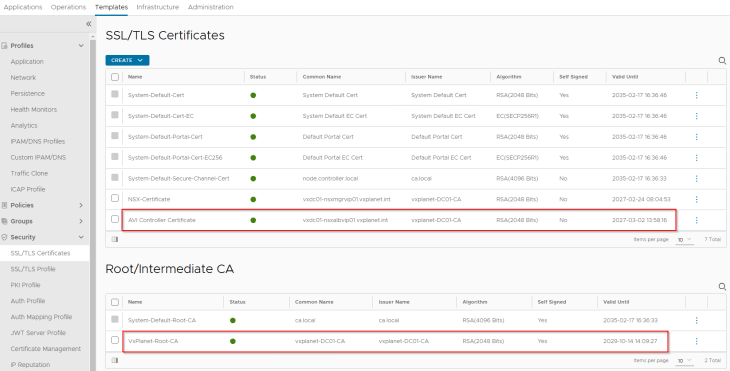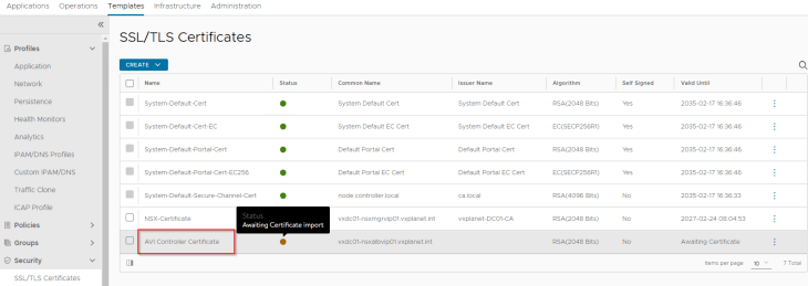 We will present the CSR to the internal CA ‘VxPlanet-DC01-CA’ and upload the certificate as a chain in AVI.