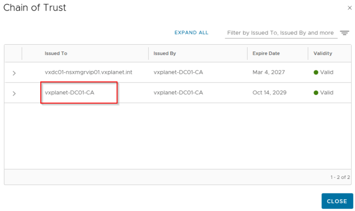 As discussed in Part 2, NSX manager is using an internal CA signed certificate (for MGMT_Cluster and Rest API). VMware AVI is also using a certificate issued by the same internal CA, and this internal root CA certificate is available in the NSX trust store but not in the Java trust store.