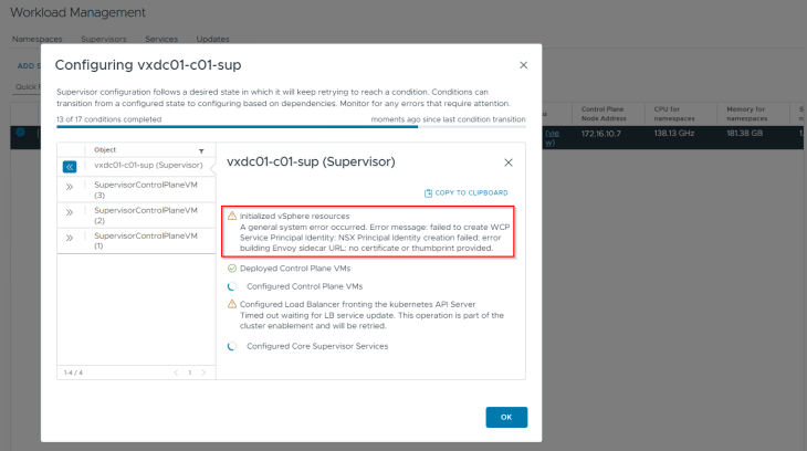 If we miss this step, vSphere supervisor activation will most likely fail with the below error: