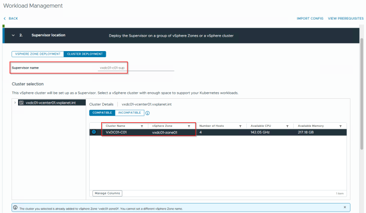 Now that we have all the pre-requisites in place, it’s time to activate the vSphere supervisor. This will be a single-zone supervisor with NSX as the networking stack.