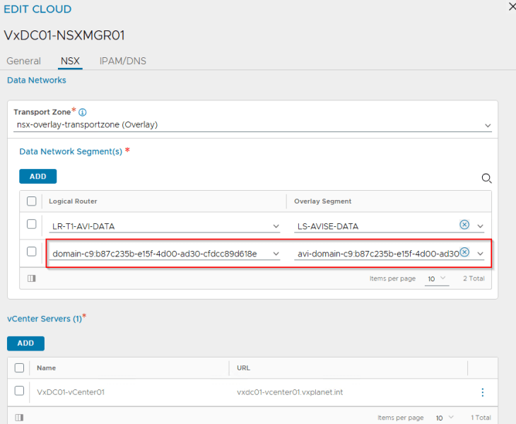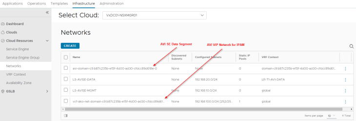 The T1 gateway created for the vSphere supervisor and the AVI data segment will be added by the workflow as data networks to the AVI cloud connector that we configured in Part 2.
