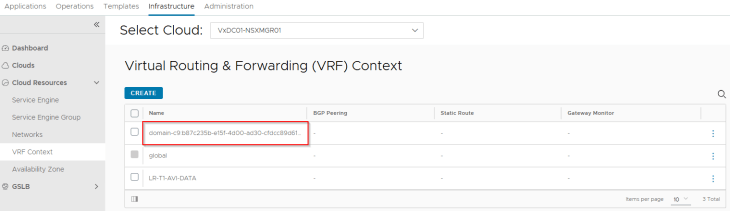 The Supervisor T1 gateway added under the NSX cloud connector will be mapped as a VRF context. We don’t need to add a default route for this VRF context because DHCP is already enabled on the AVI data network which can provide the default gateway information to the SEs.