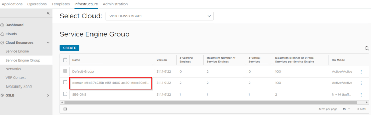 Since we didn’t have a template SE Group specified in the NSX cloud connector, a new SE Group has been created for the vSphere supervisor which is a cloned configuration of the “Default-Group”. In Part 2, we already prepared this “Default-Group” with the desired HA mode, sizing and placement details.