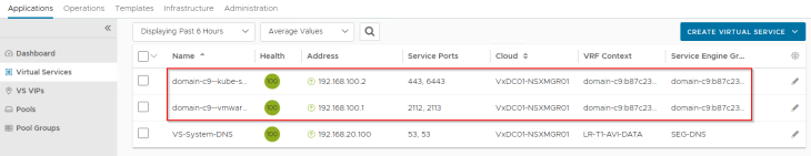 and finally, we see the supervisor control plane VIPs up and running in AVI (under the NSX cloud connector and on the supervisor T1 VRF Context)
