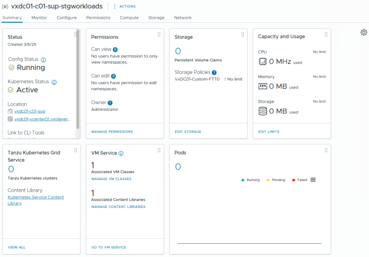 • one for the supervisor and all vSphere namespaces inhering network settings from the supervisor