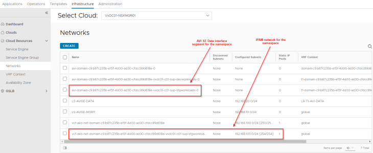 • VIP network: Because we are overriding the network settings from the supervisor with a custom Ingress network, we should see a new IPAM network created and added to the NSX cloud connector.