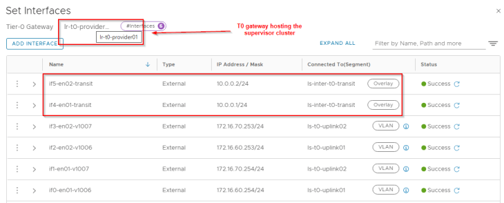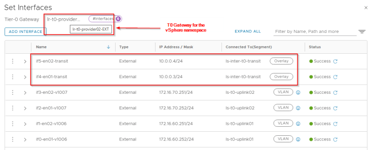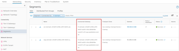 We will add this segment as external interfaces to both T0 gateways (Supervisor T0 and vSphere namespace T0).