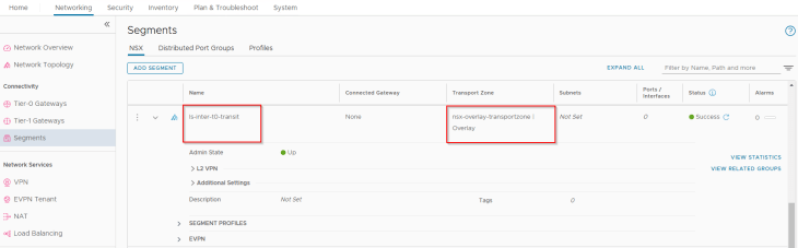 We will create an isolated overlay segment (on the same overlay transport zone where the supervisor cluster is prepared with)